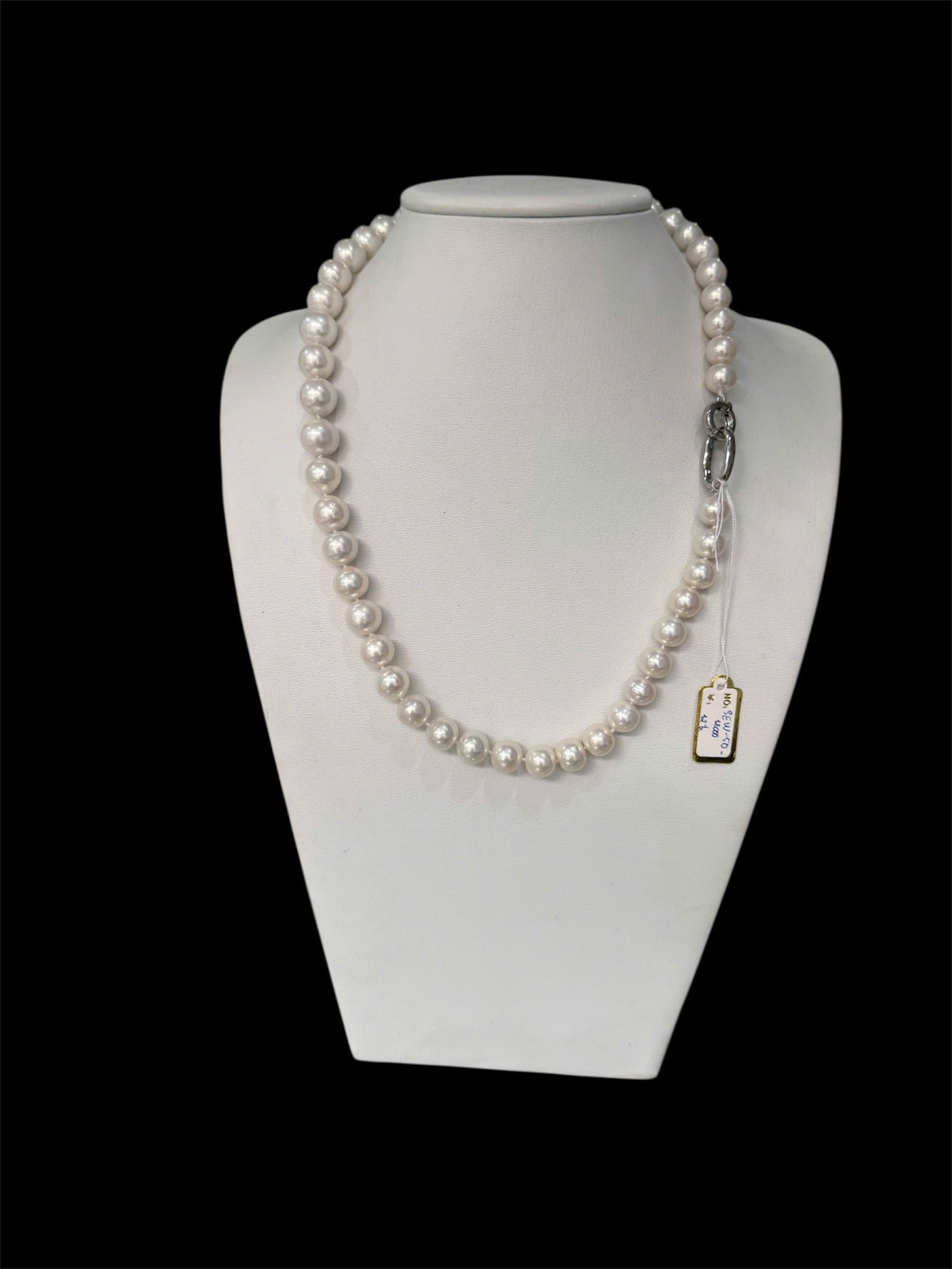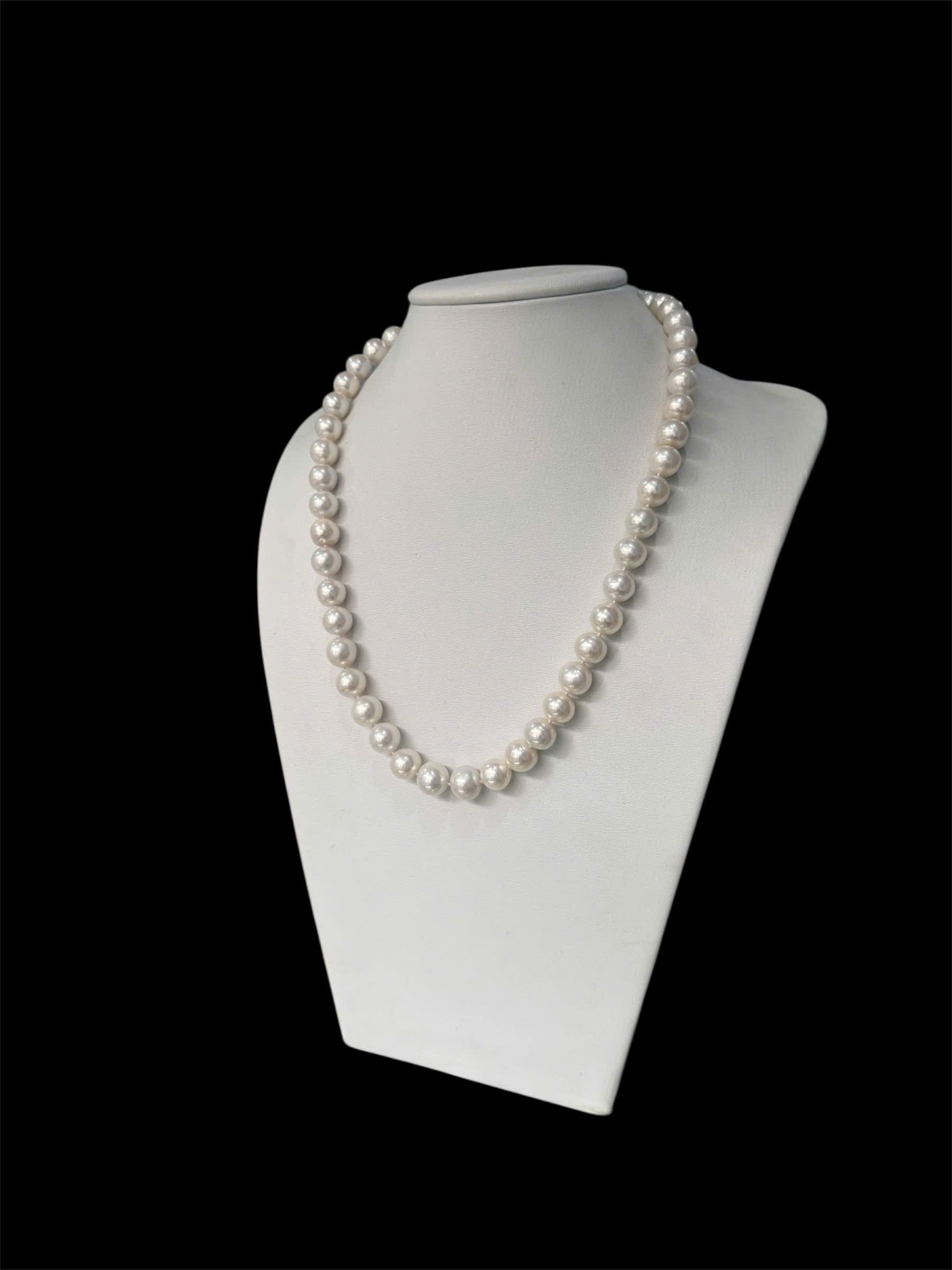 Ngọc trai Edison màu trắng tinh. Size 9-11mm. Dáng ngọc tròn và gần tròn. Dây là dáng ngọc lý tưởng dành cho các anh trai vượt ngàn chông gai. Bởi nếu viên ngọc tròn quá hoàn hảo, sẽ làm mất đi vẻ nam tính của các Quý ông.
