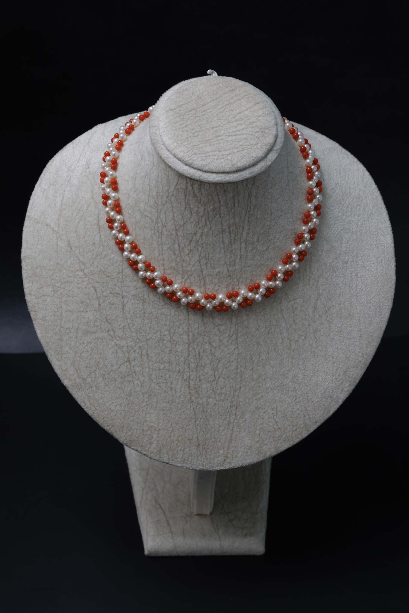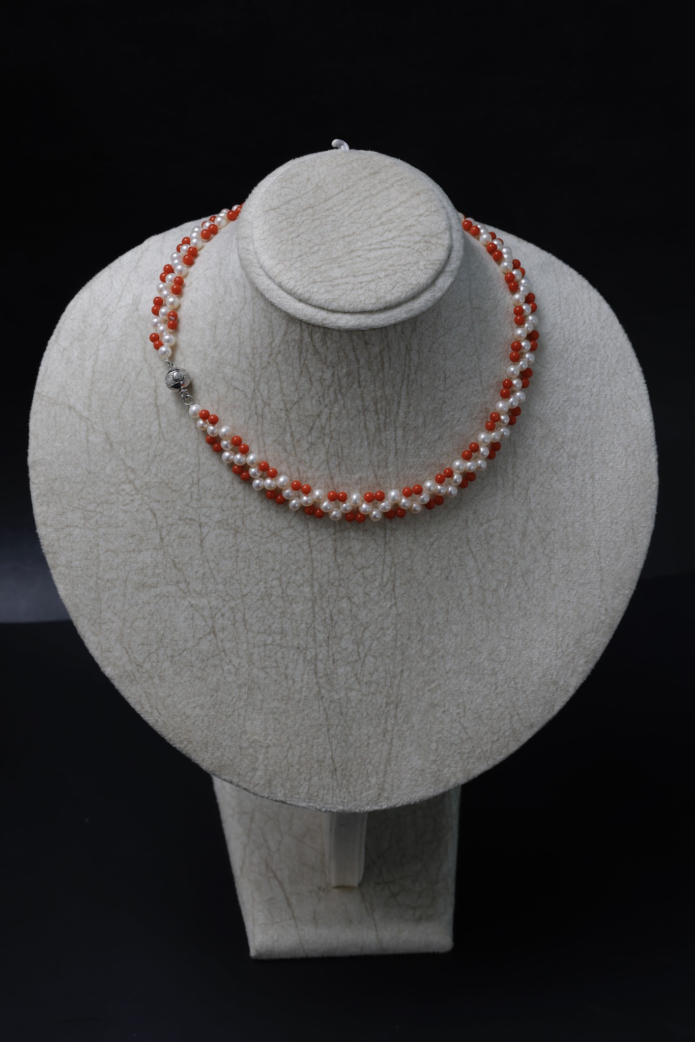 Những viên san hô với màu đỏ tự nhiên và thật 100%, có giấy chứng nhận của phòng lab kiểm định đá quý Hàng Châu, Trung Quốc. Được kết với những viên ngọc trai Akoya size tiny 4-5mm.