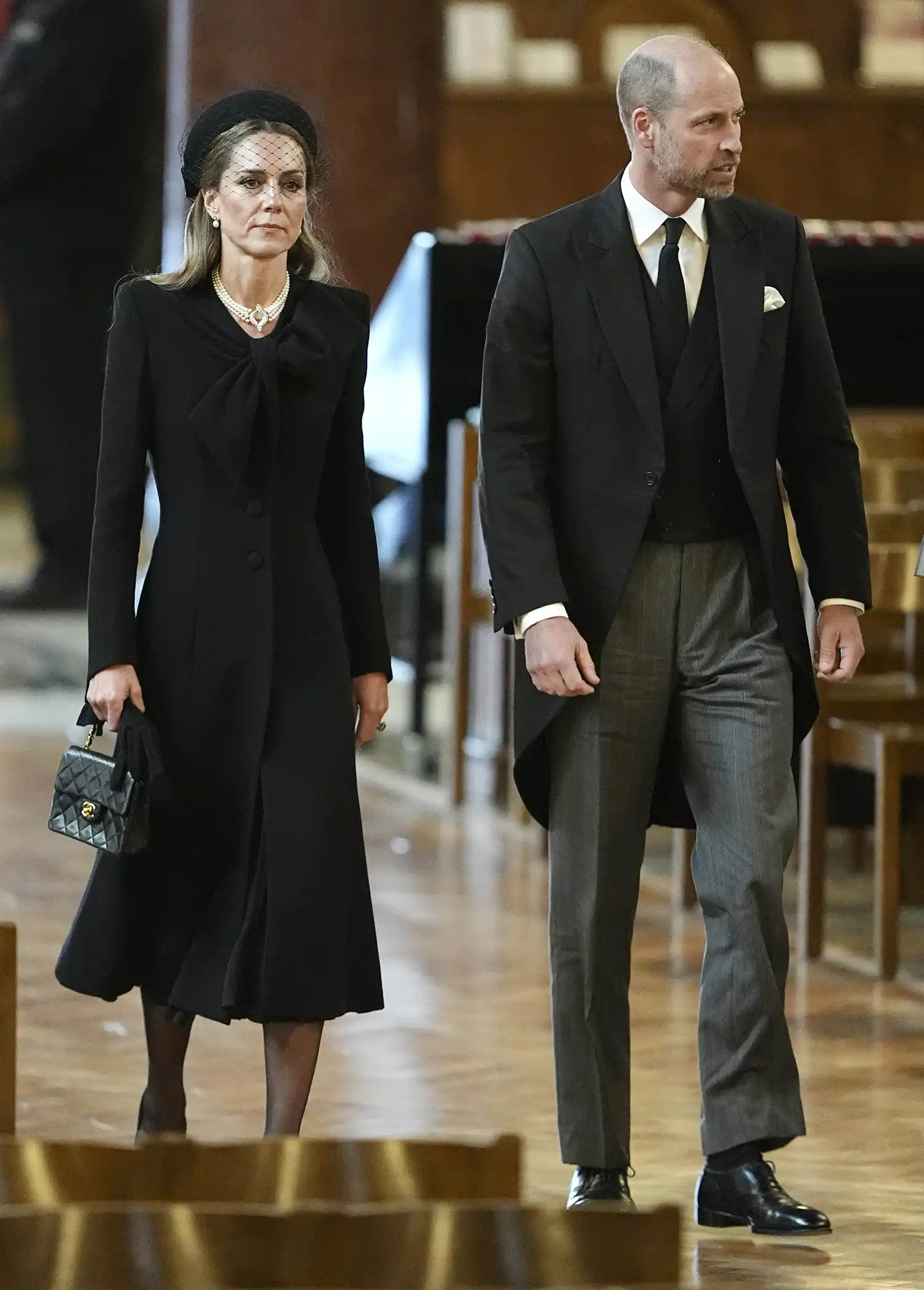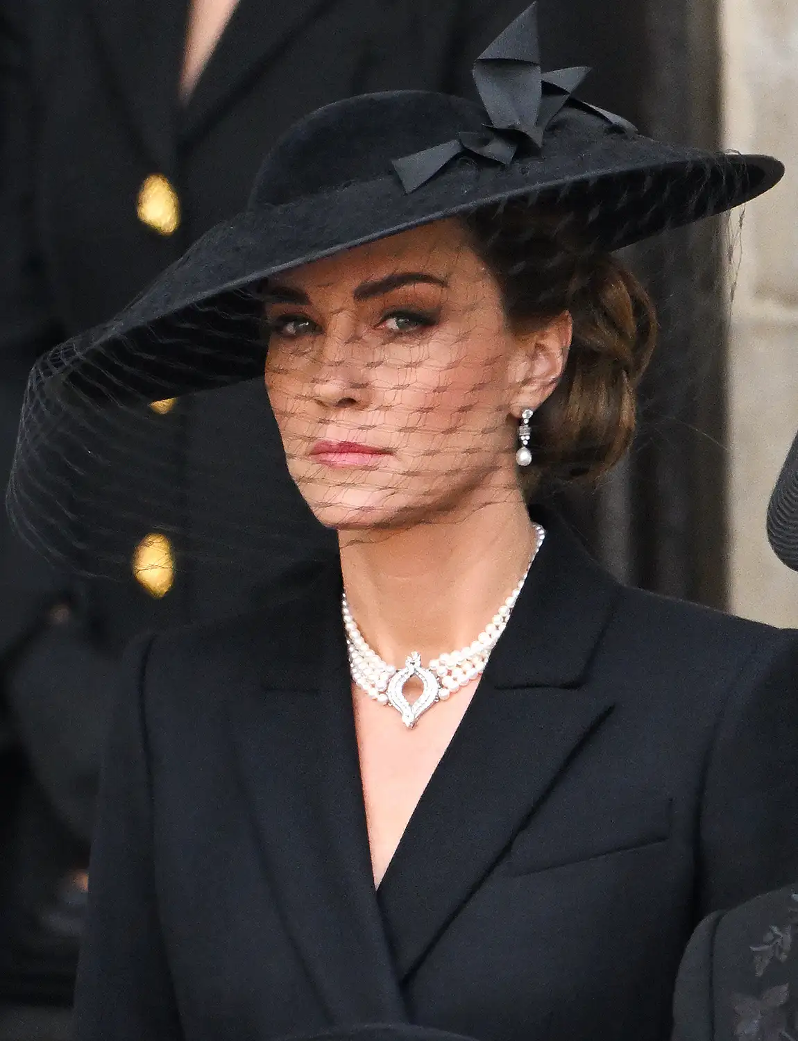 Ngày 16/9, tại tang lễ Công giáo của Katharine, Nữ công tước xứ Kent, Công nương Kate Middleton (43 tuổi) xuất hiện trong trang phục đen truyền thống gồm mũ và khăn che mặt. Điểm nhấn nổi bật trên bộ đồ tang trang nghiêm là chiếc vòng cổ ngọc trai bốn sợi gắn khóa kim cương - món trang sức từng được Nữ hoàng Elizabeth II sử dụng trong tiệc quốc yến tại Bangladesh năm 1983.