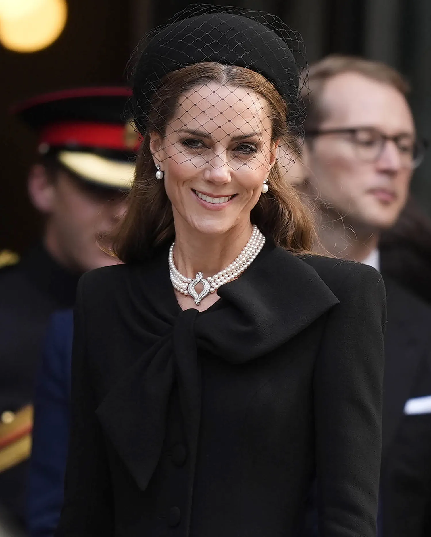 Đây không phải lần đầu tiên Công nương Kate chọn chiếc vòng cổ này cho các sự kiện tang lễ Hoàng gia. Trước đó, cô đã đeo nó trong tang lễ của Nữ hoàng Elizabeth năm 2022 và Hoàng thân Philip năm 2021.