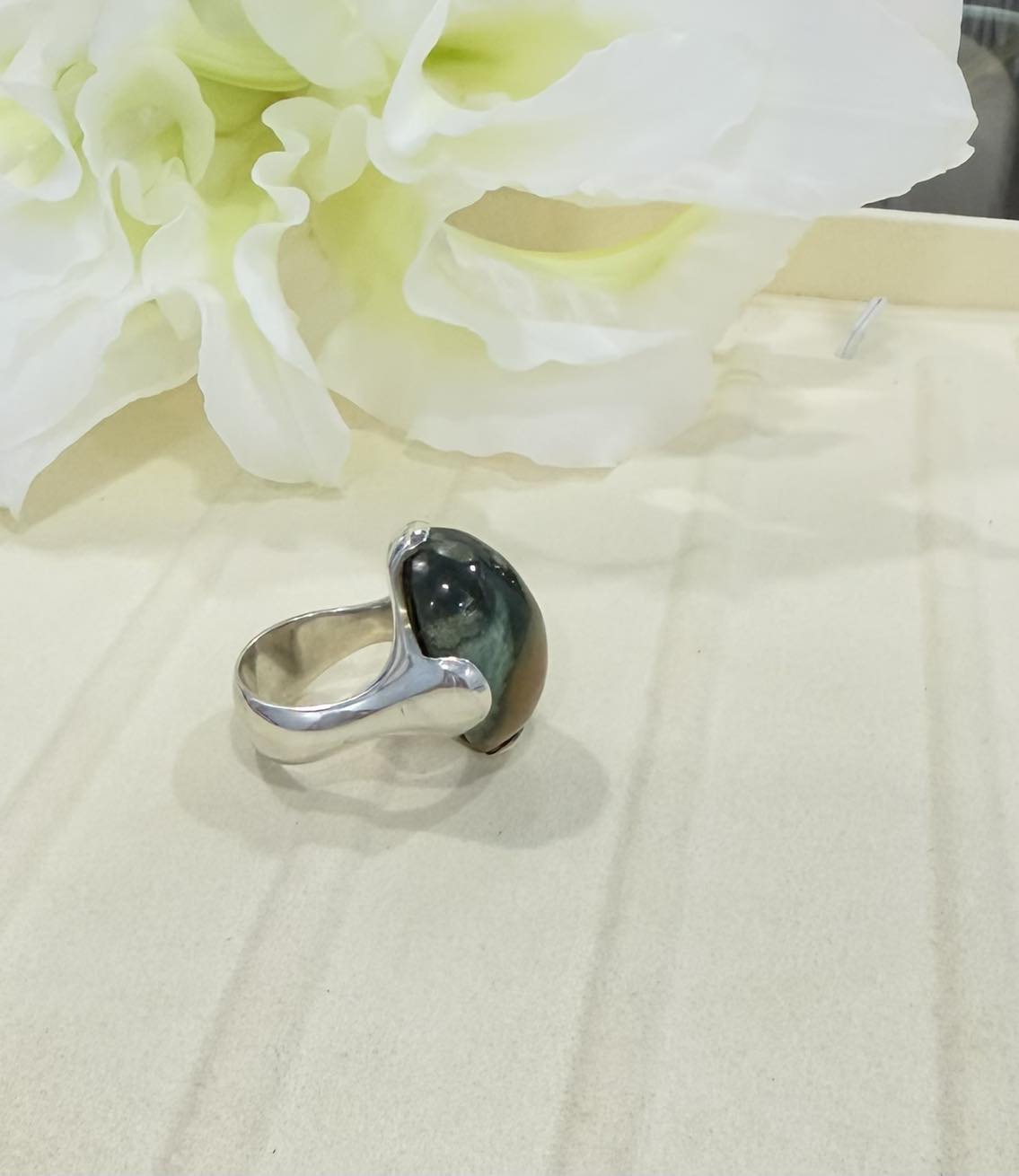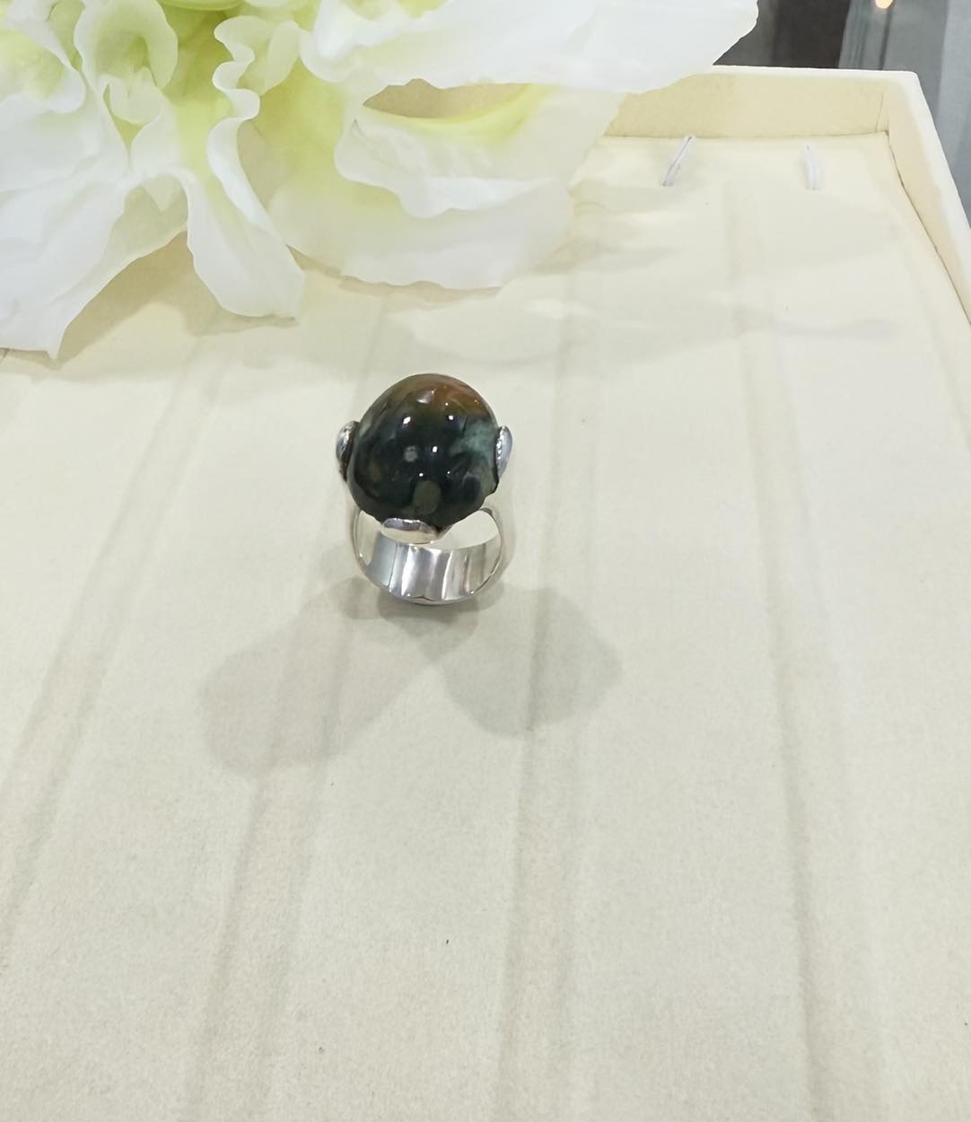 Nhẫn bạc đá mã não xanh 100% tự nhiên