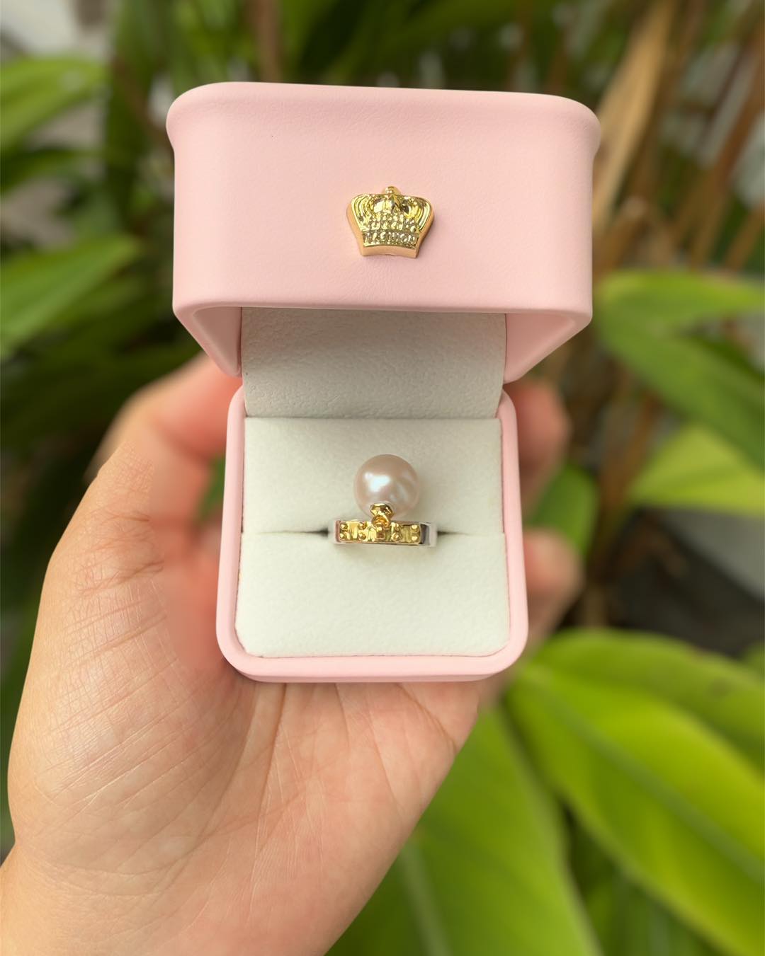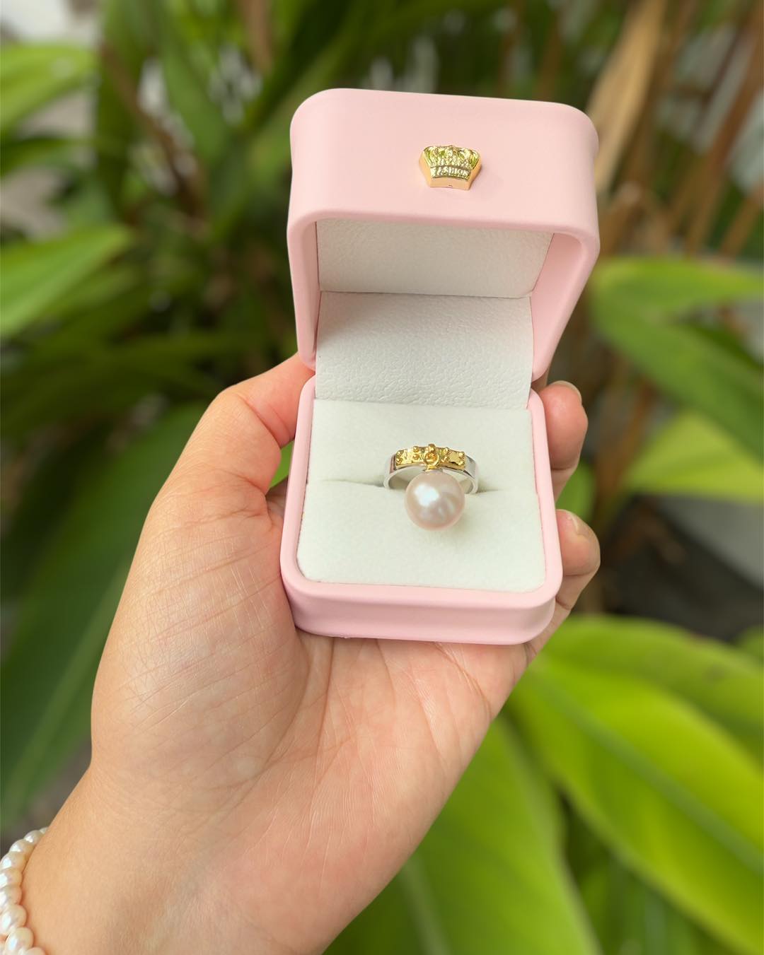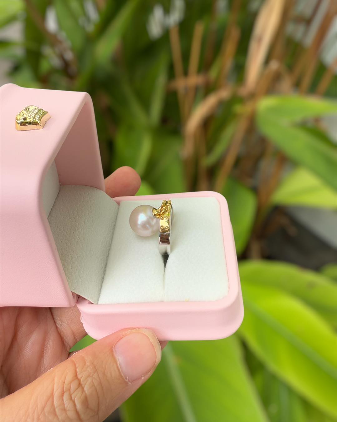 Nhẫn ngọc trai Edison màu trắng hồng. Size 10-10.5. Tròn đều không tì vết. Khung nhẫn chất liệu bạc 925 mạ vàng 14k. Size nhẫn là 11-12.