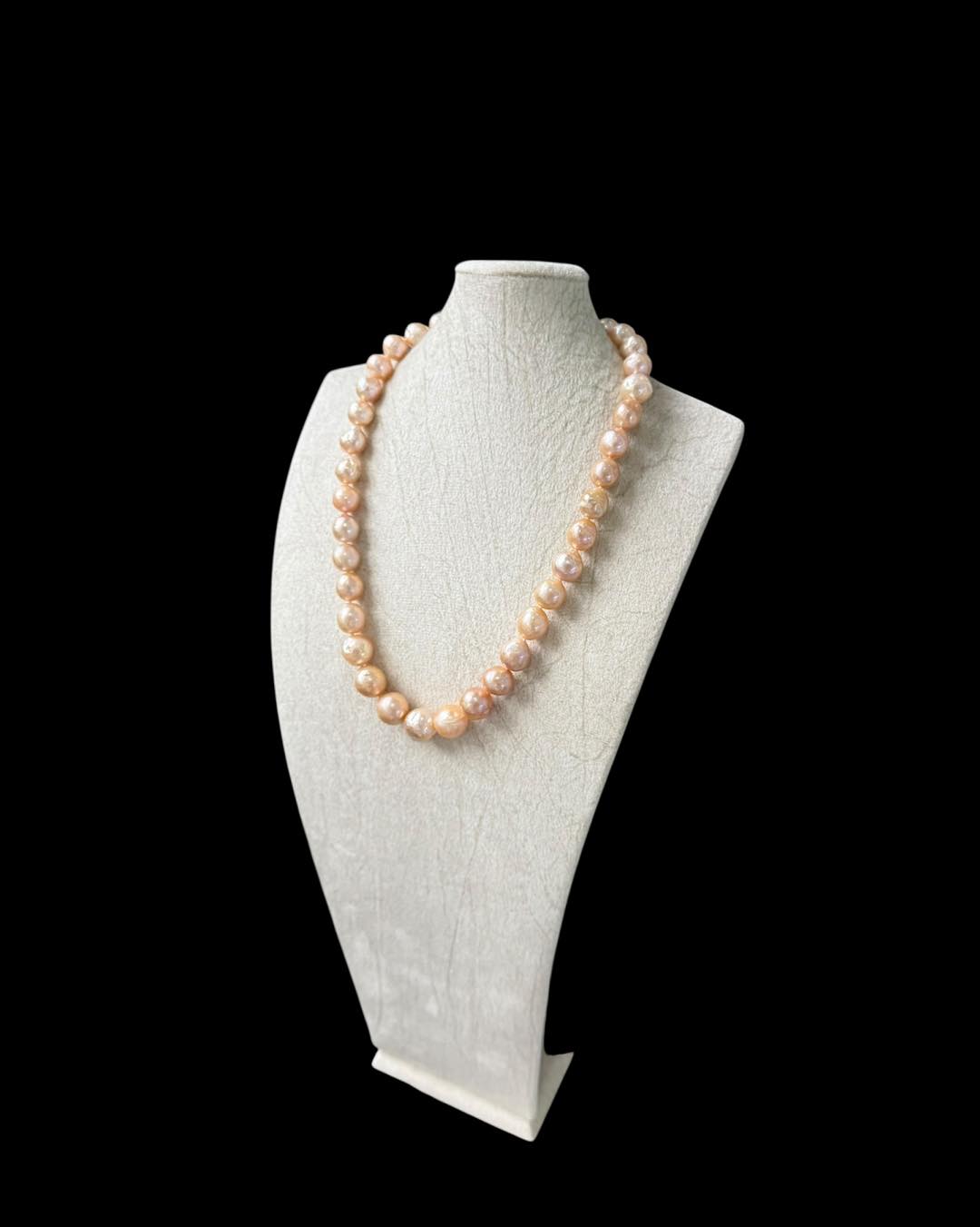 Nếu muốn làm mới bản thân với sắc màu cam vừa rực rỡ vừa ngọt ngào, viên ngọc lại có hình dáng thô ráp kỳ quái, hãy chọn ngay chiếc chuỗi ngọc trai có lớp xà cừ nhăn tự nhiên (ripple pearl) này ngay nhé. Bảo đảm oà bạn sẽ không hối hận đâu. Đặc biệt là các nàng đẹp có làn da trắng.