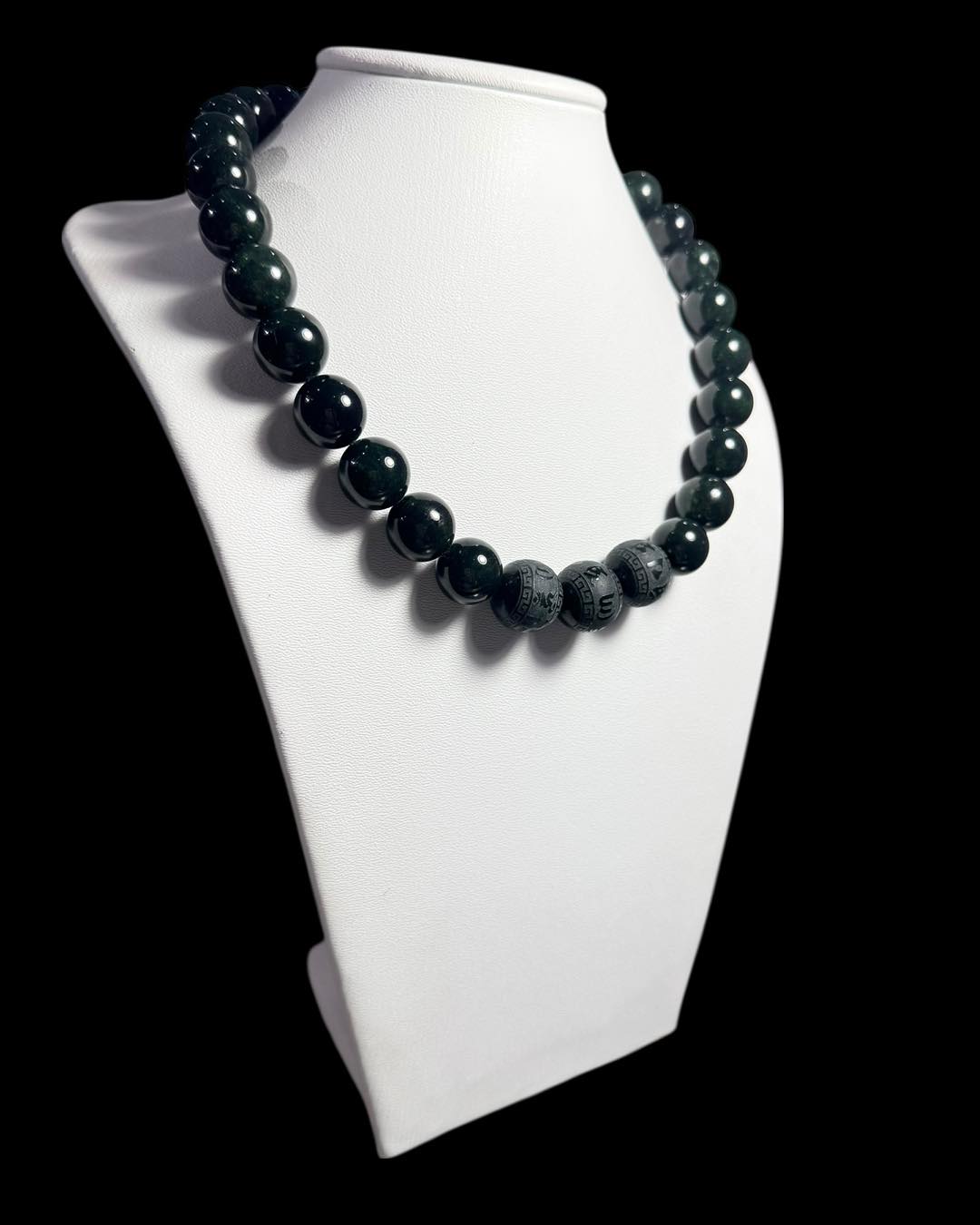 Sở hữu vẻ đẹp đầy uy lực và sự huyền bí, chuỗi ngọc bích (Nephrite Jade) này không chỉ là trang sức, mà là một món bảo vật dành cho những người tìm kiếm sự khác biệt và đẳng cấp thực sự.